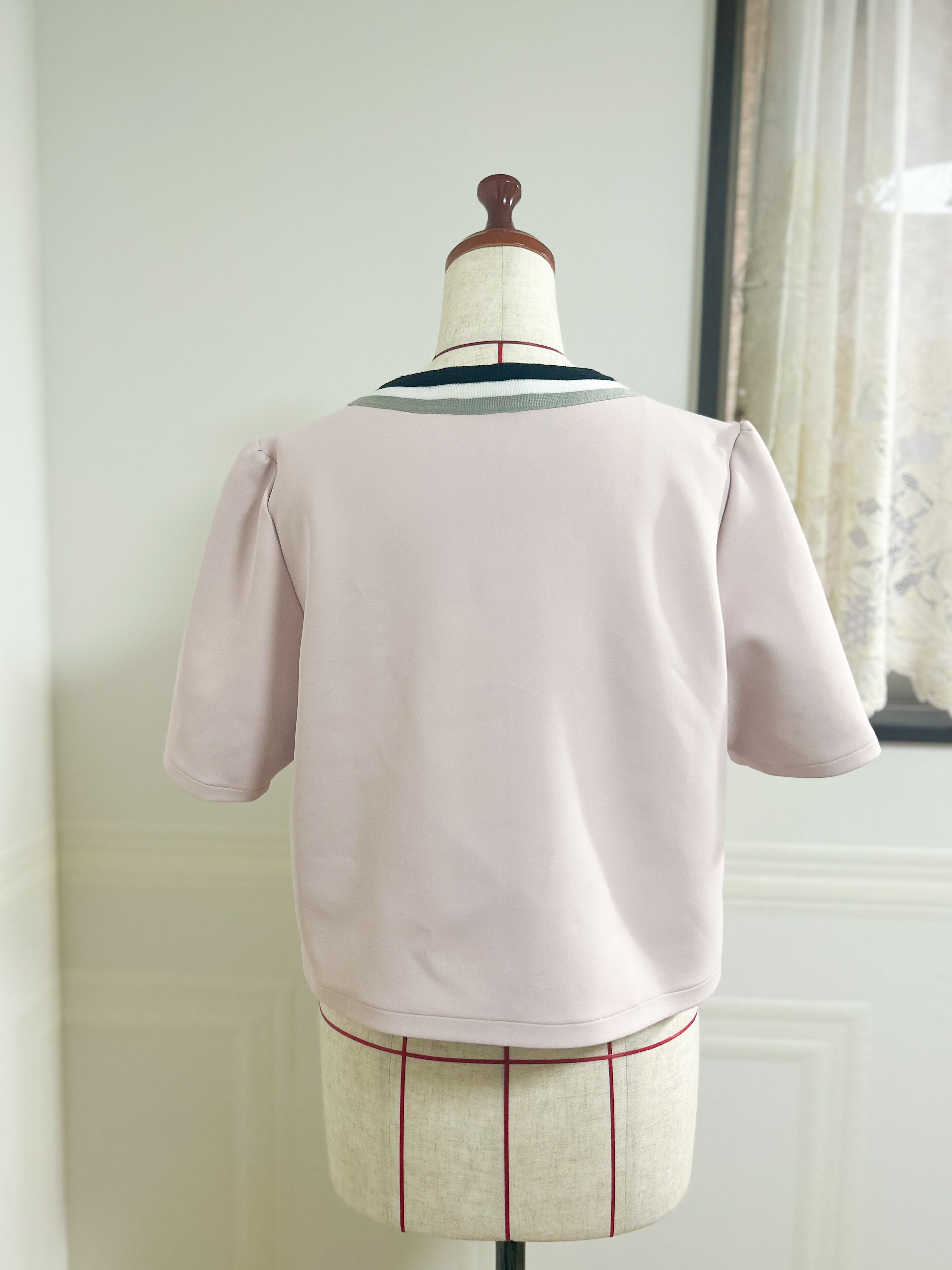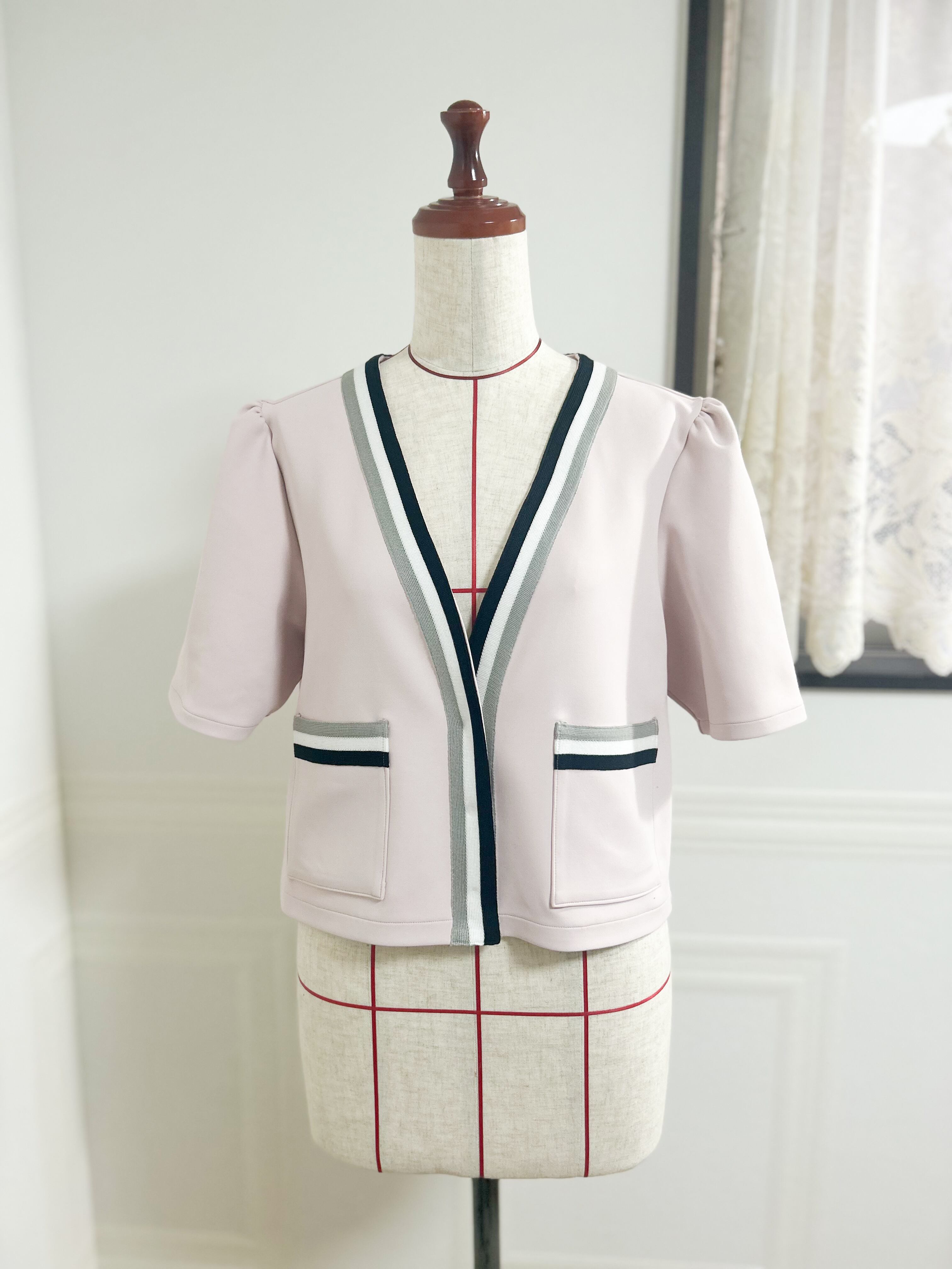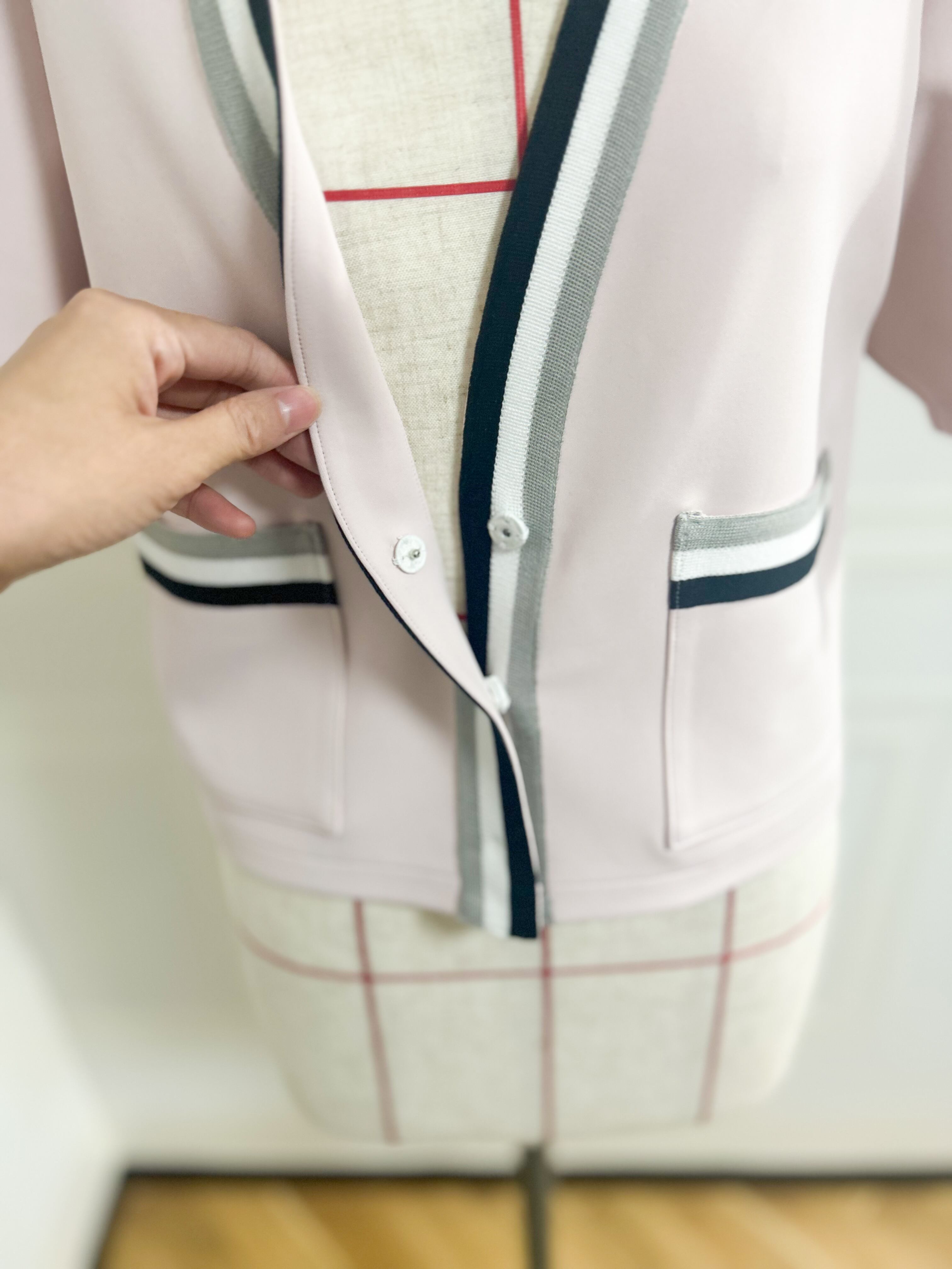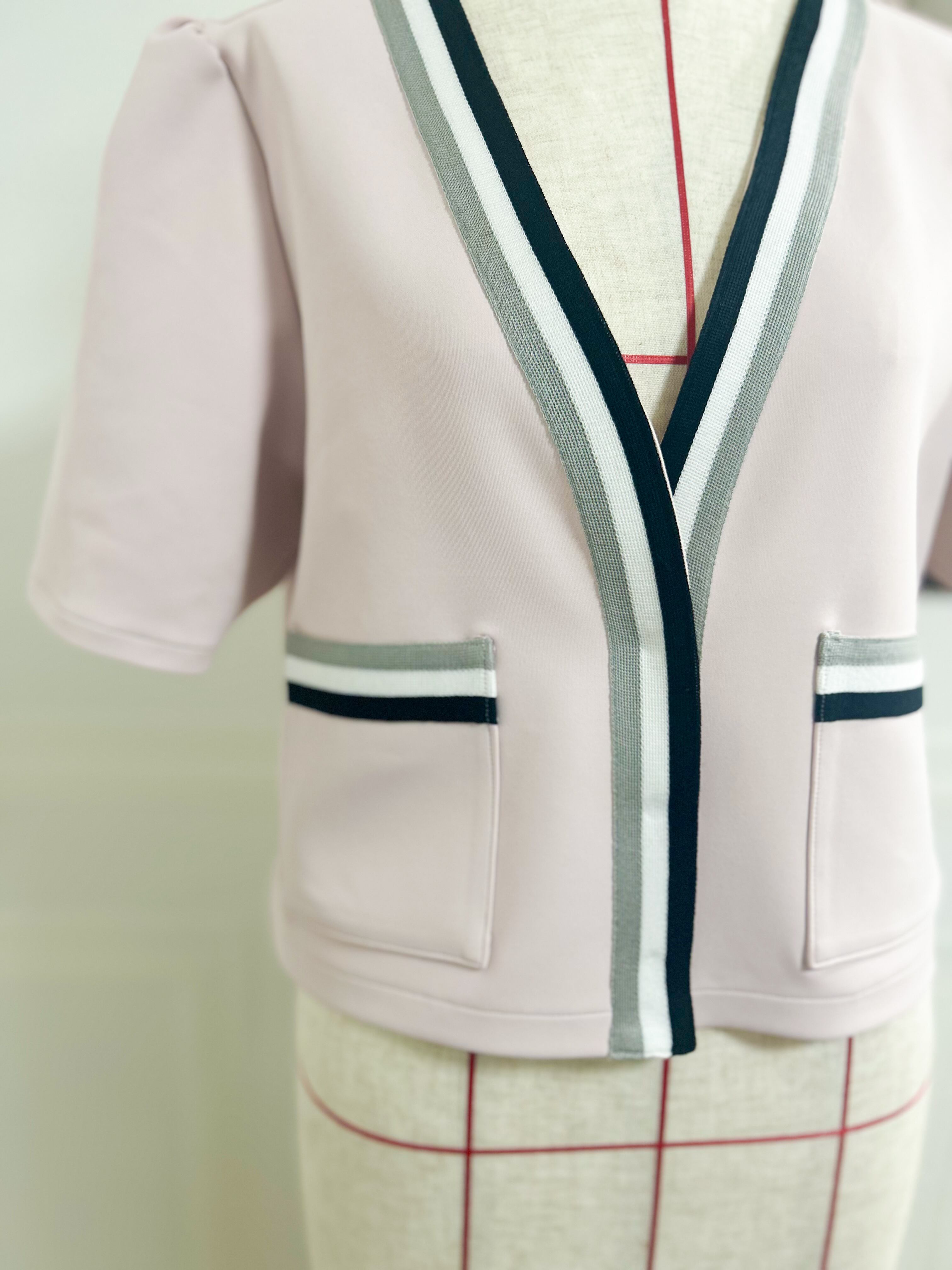 【半袖】ペールピンク ダンボールニットのラインカーディガン