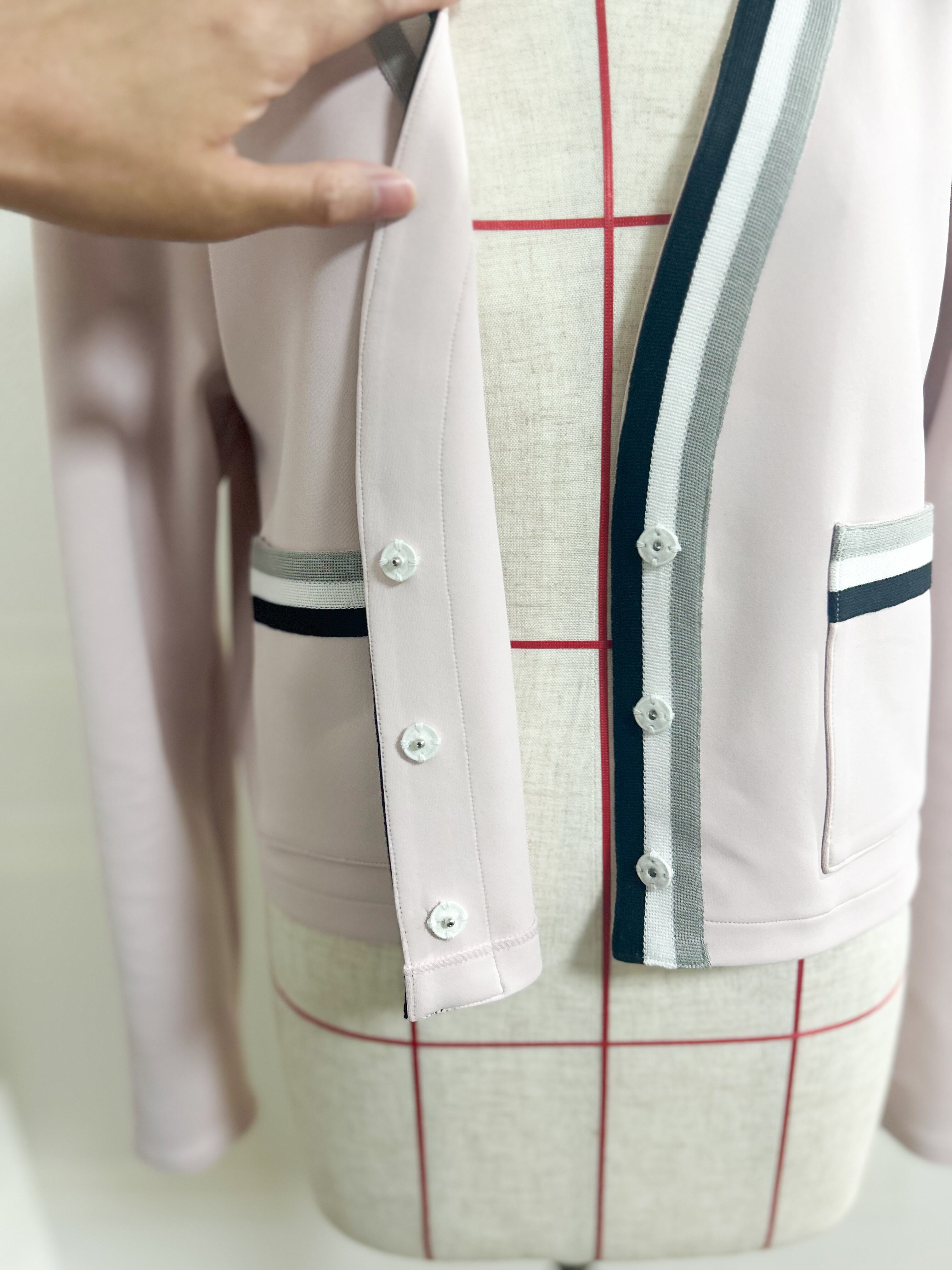 【長袖】ペールピンク ダンボールニットのラインカーディガン