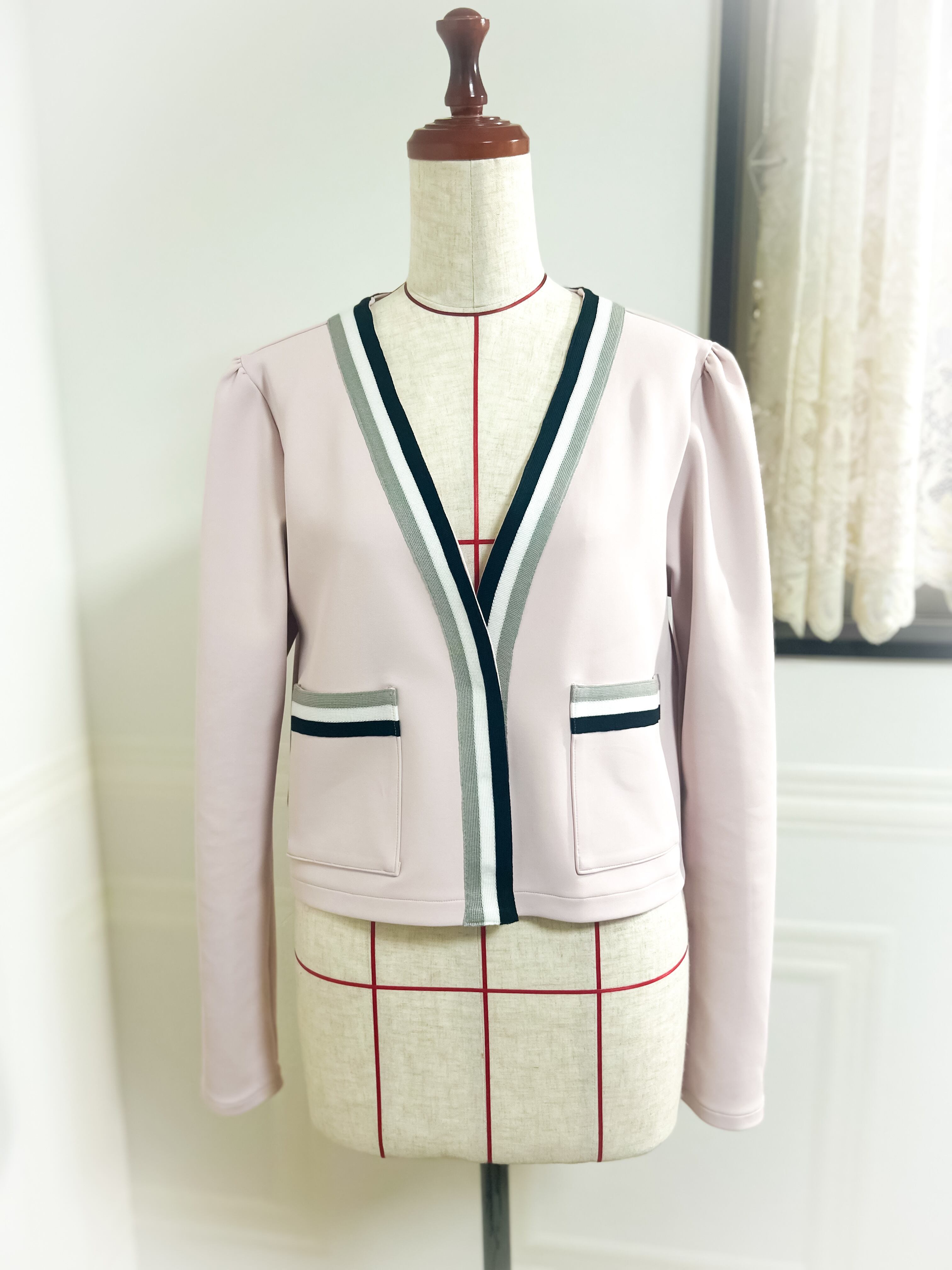 ペールピンクのダンボールニットでラインカーディガンを仕立てました♡